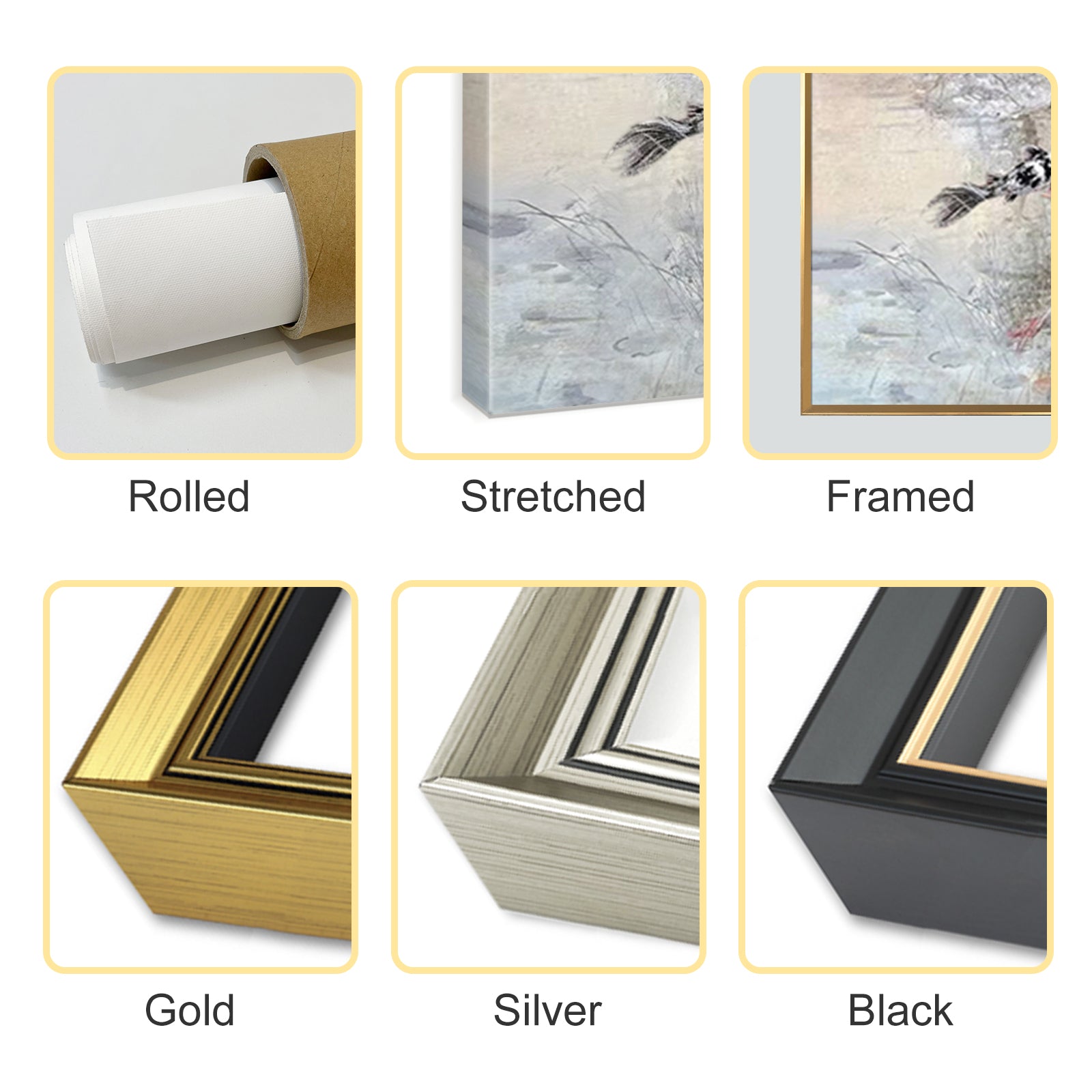 No frame included. Delivered as a rolled canvas for easy shipping and flexible DIY framing.