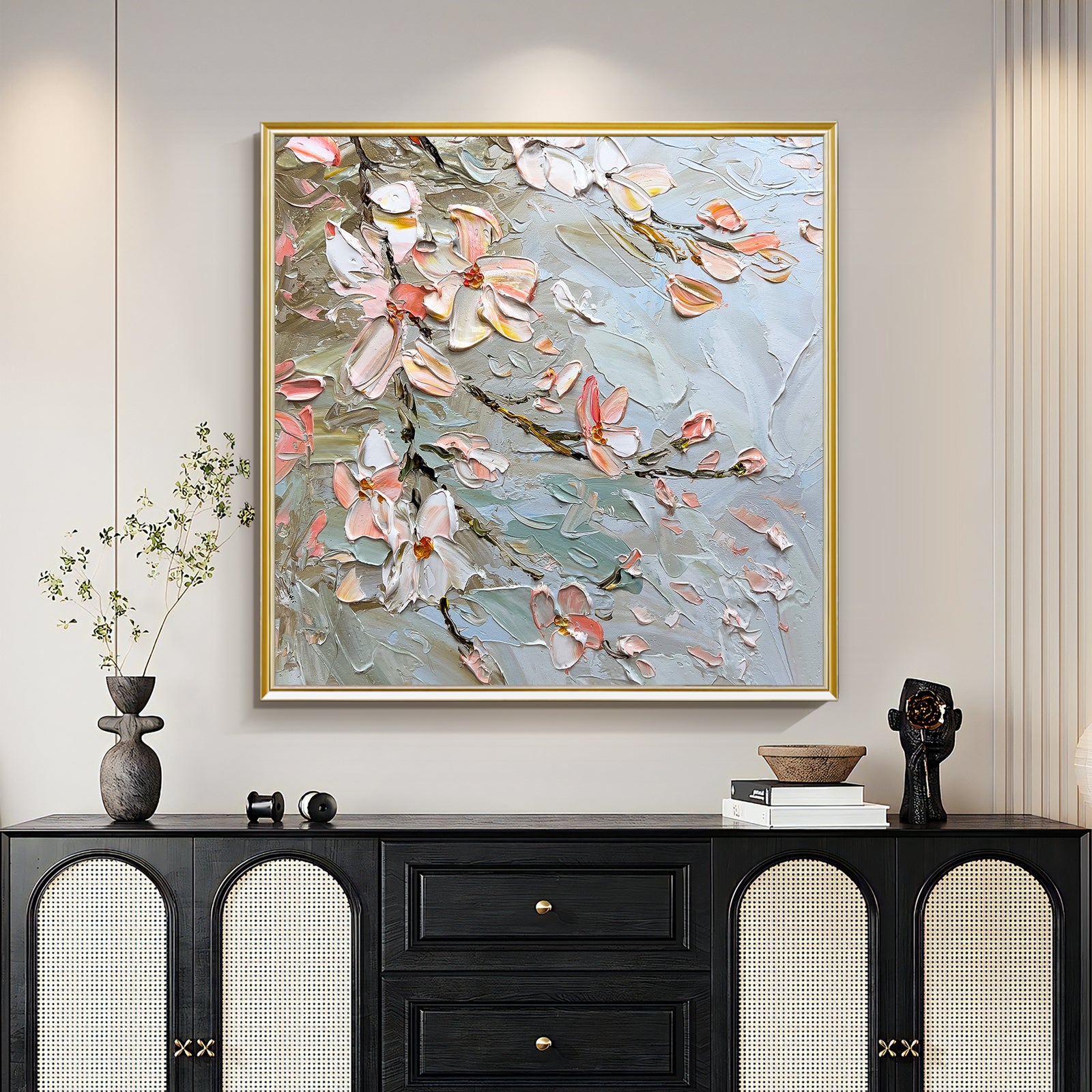 ✨ Featuring soft pink and white blossoms, this artwork captures the freshness of spring and the vitality of life. The flowers symbolize purity, sweetness, and enduring love, making the piece both uplifting and meaningful.